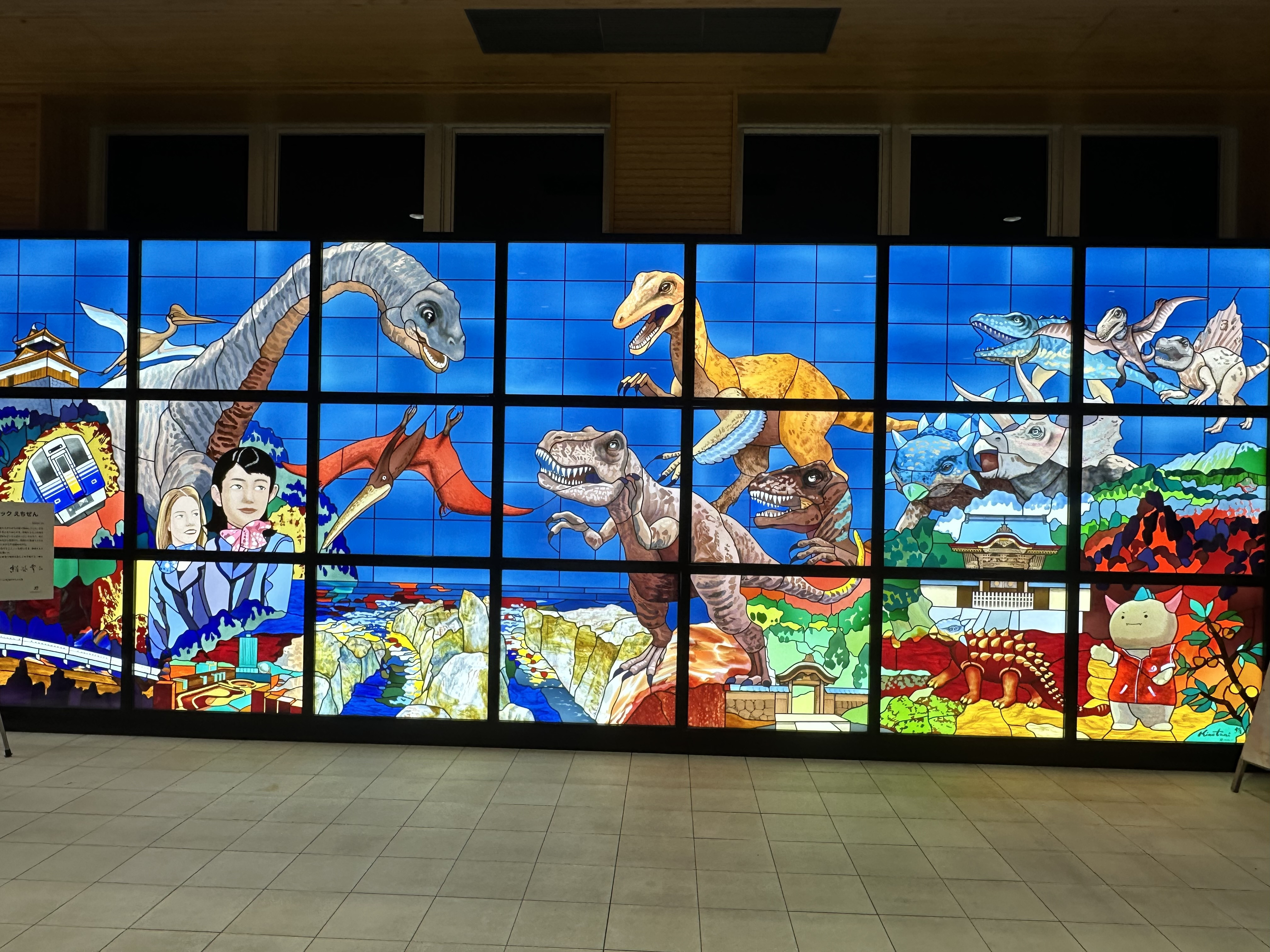 福井の魅力が詰まった壮大な、ステンドグラス作品。恐竜、東尋坊、