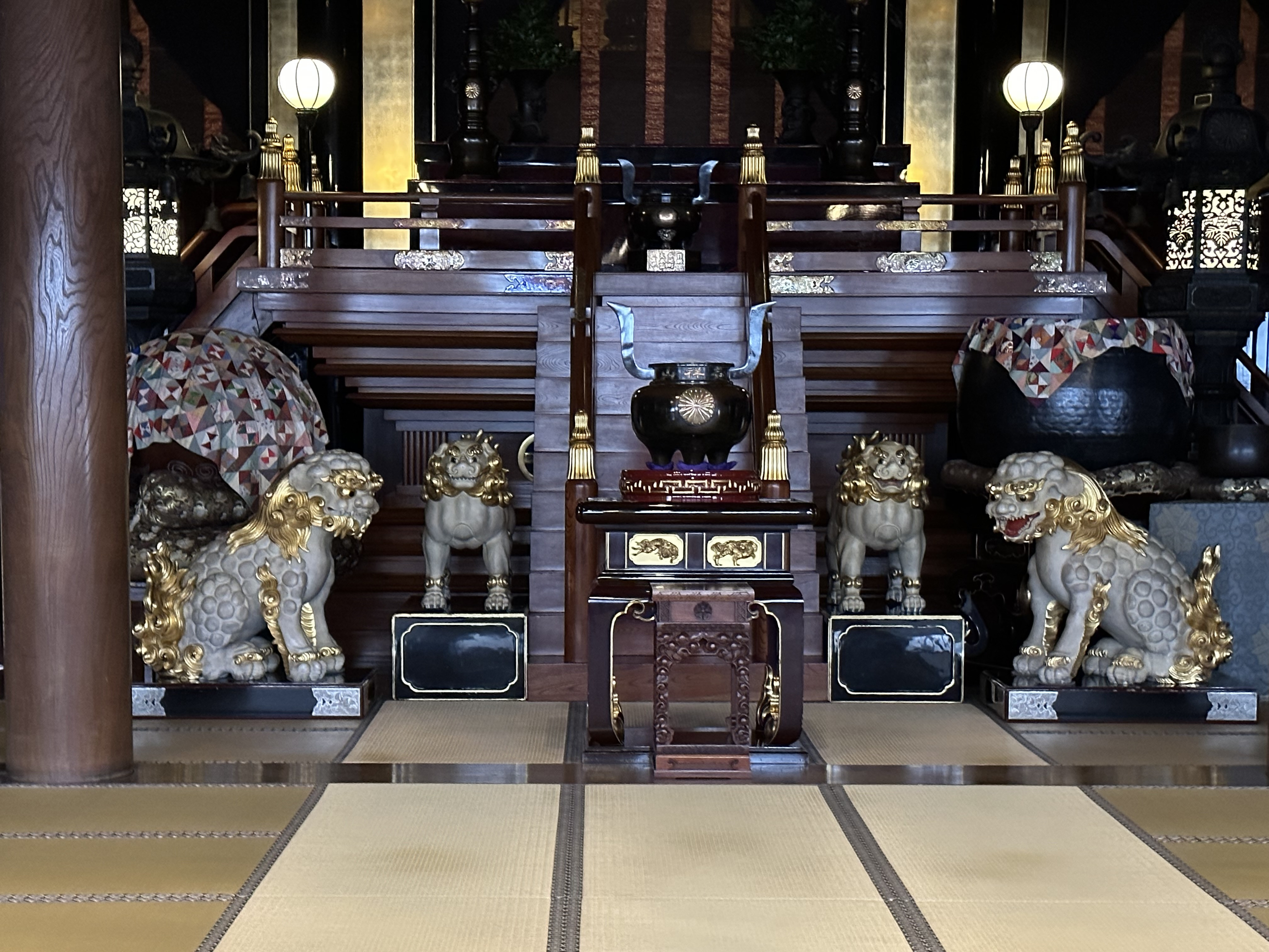 阿吽の白獅子が2対 中央にはご本尊の聖観世音菩薩