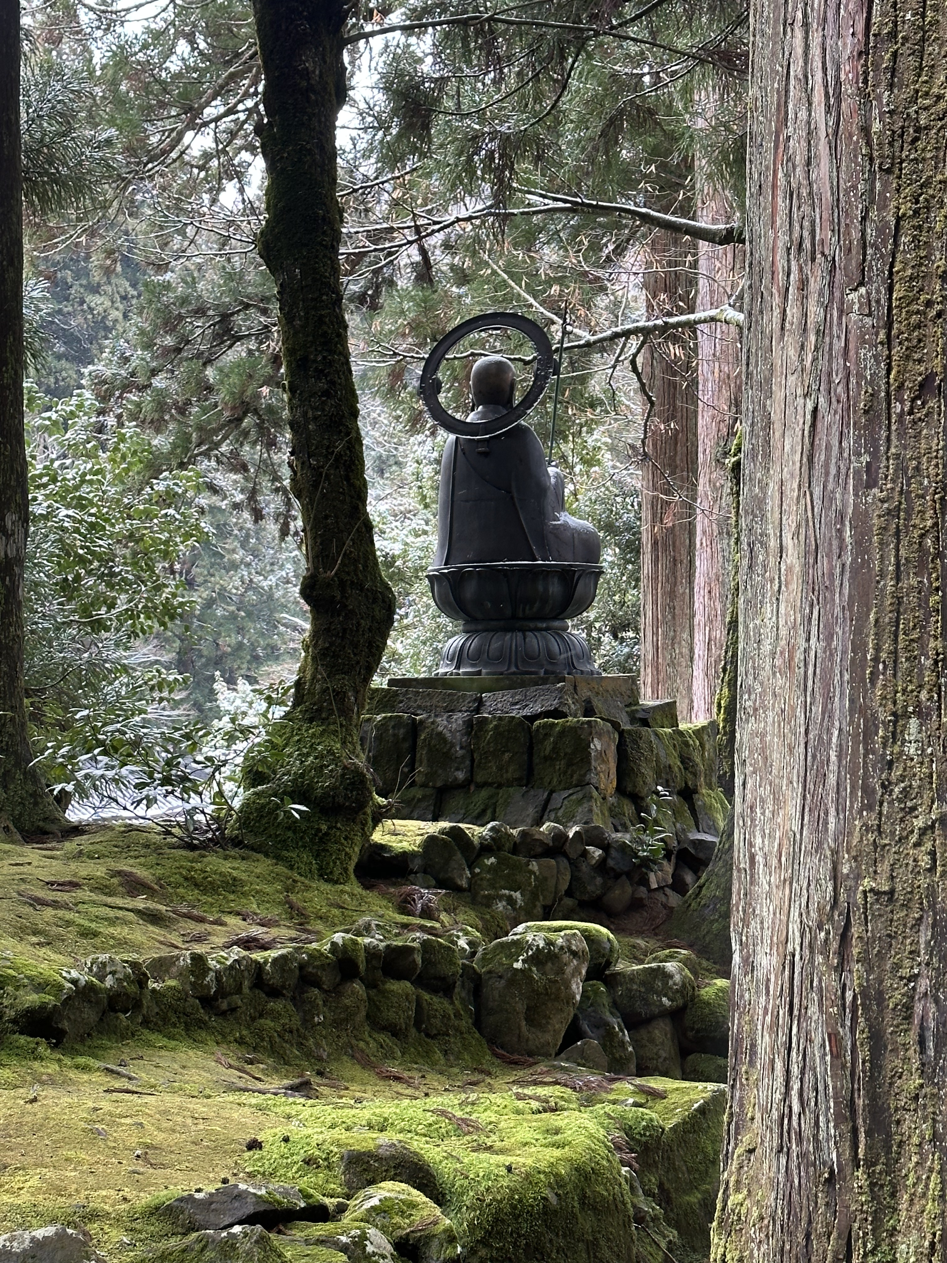 苔や名前も分からぬ像の後ろ姿にも風情あり