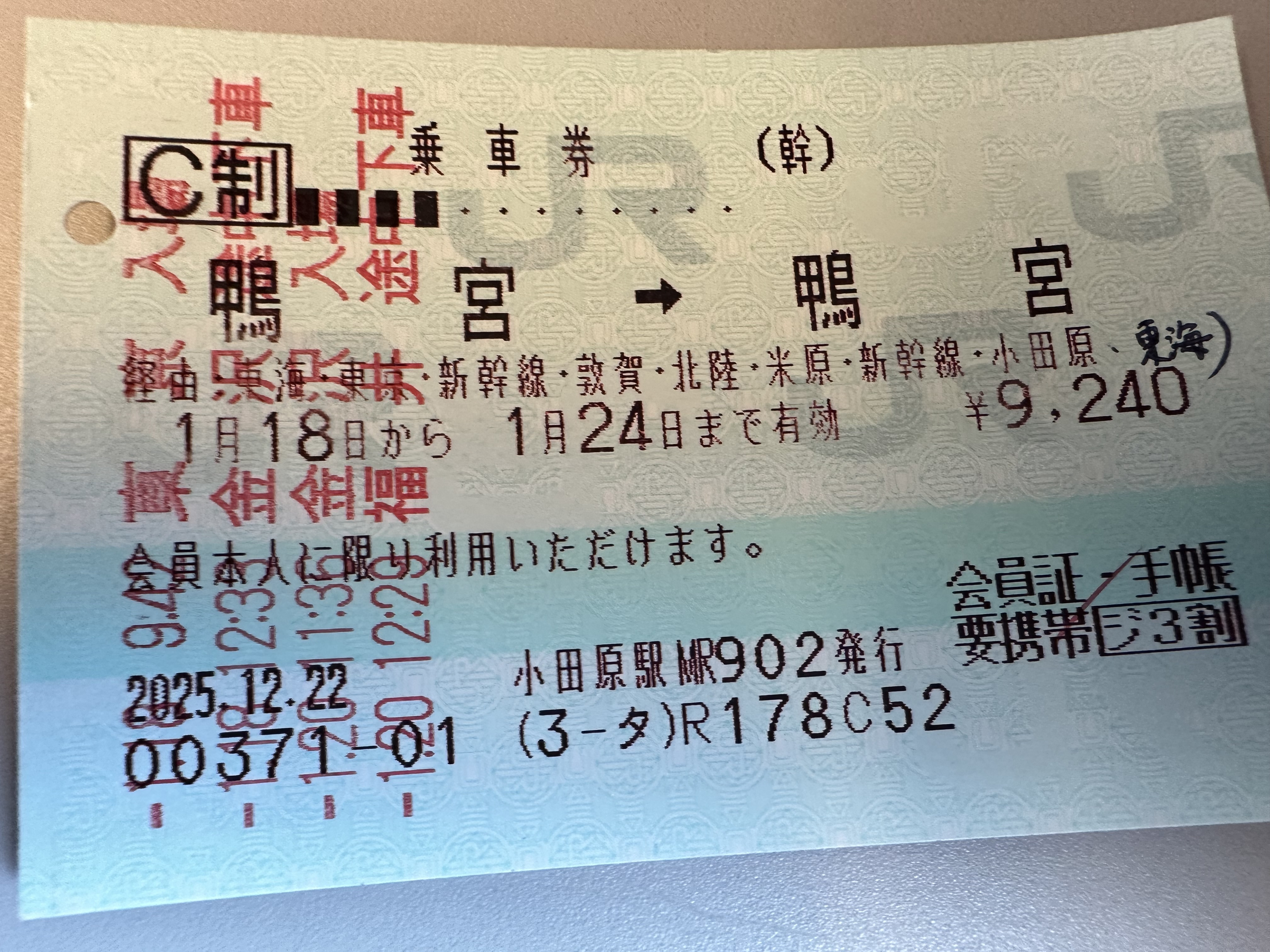 ナント、鴨宮から鴨宮 という珍しい切符です(笑)