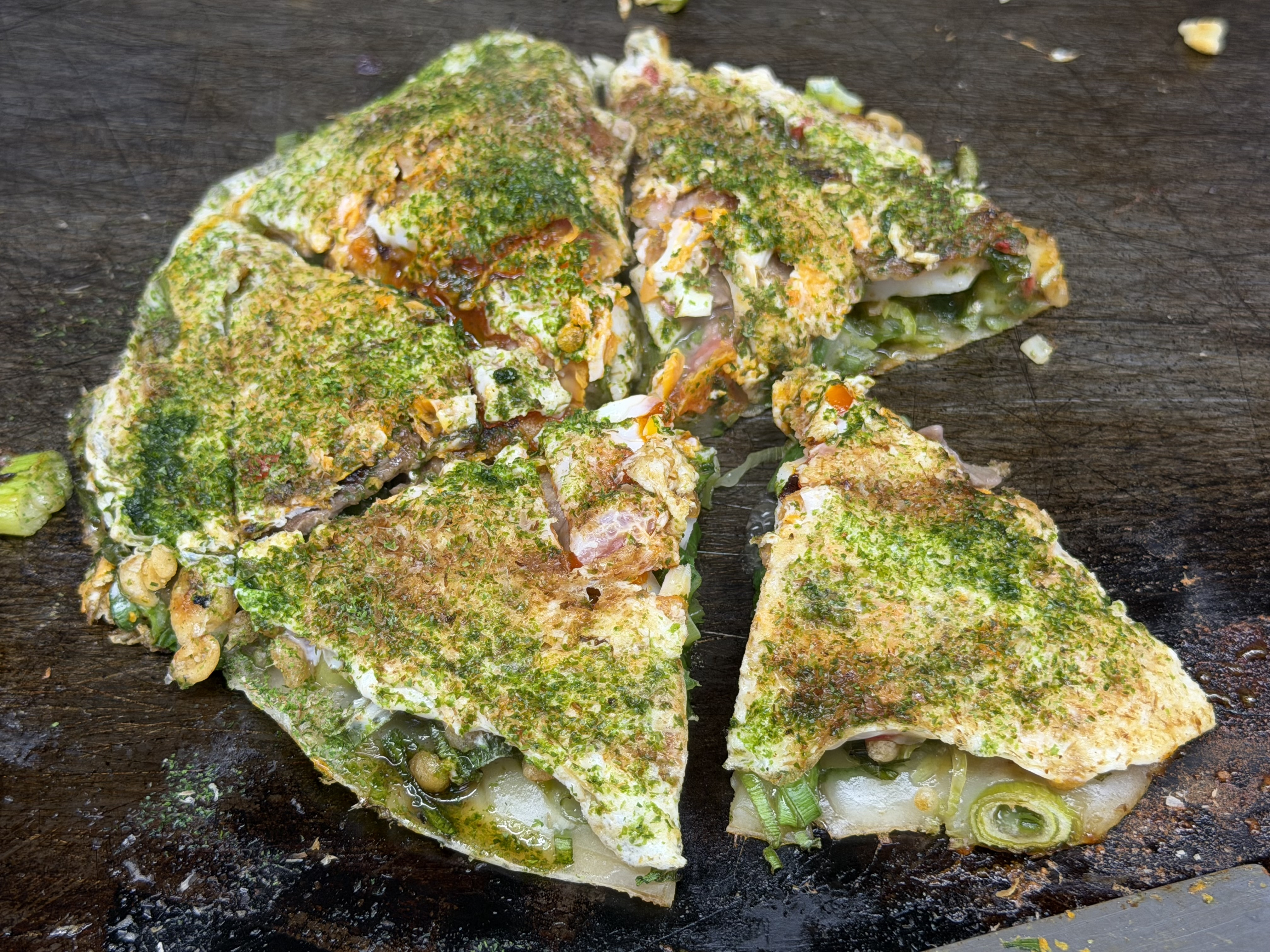この後、市バスで河原町へ。そして祇園の”ねぎ焼 かな”へ。